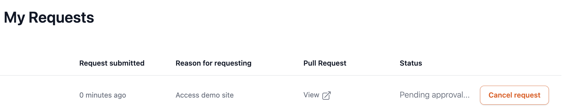 If there's an issue with your request, or you don't need the access anymore - you can cancel it using the **Cancel request** button to the right of the request in the **My Requests** page of the Abbey App.