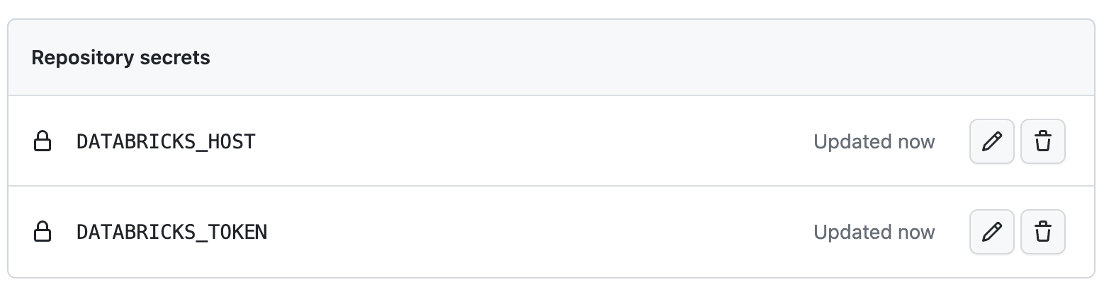 First, add your Databricks-related secrets to your repo: