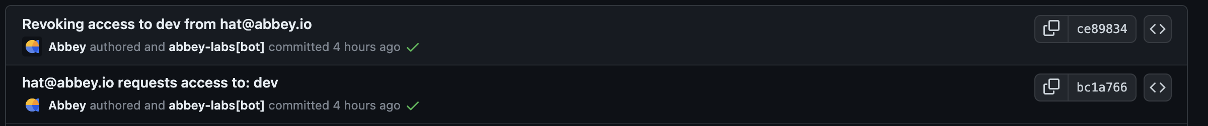 You can now start requesting and approving access by following the [requesting-access](https://docs.abbey.io/build-a-grant-kit/requesting-access "mention") and [approving-or-denying-access-requests](https://docs.abbey.io/build-a-grant-kit/approving-or-denying-access-requests "mention") guides.